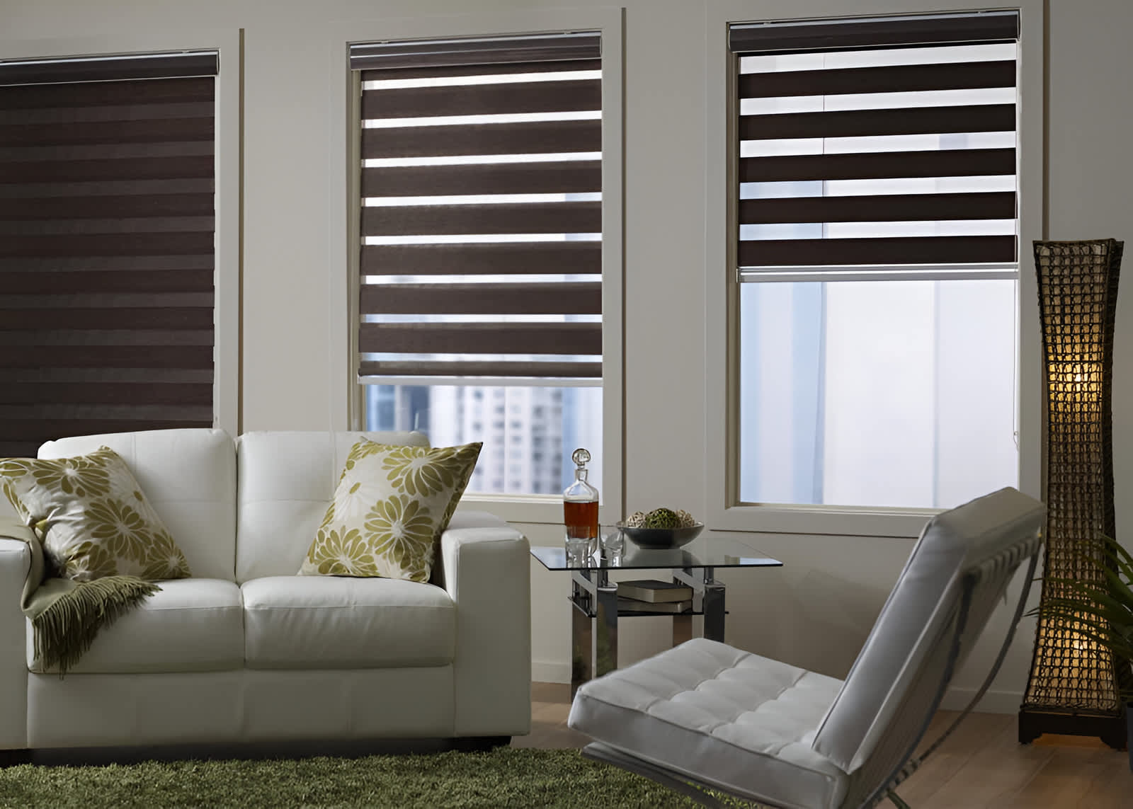 Cortinas modernas y versátiles que combinan franjas traslúcidas y opacas para controlar fácilmente la entrada de luz y la privacidad, dando un toque elegante y contemporáneo a tus espacios.